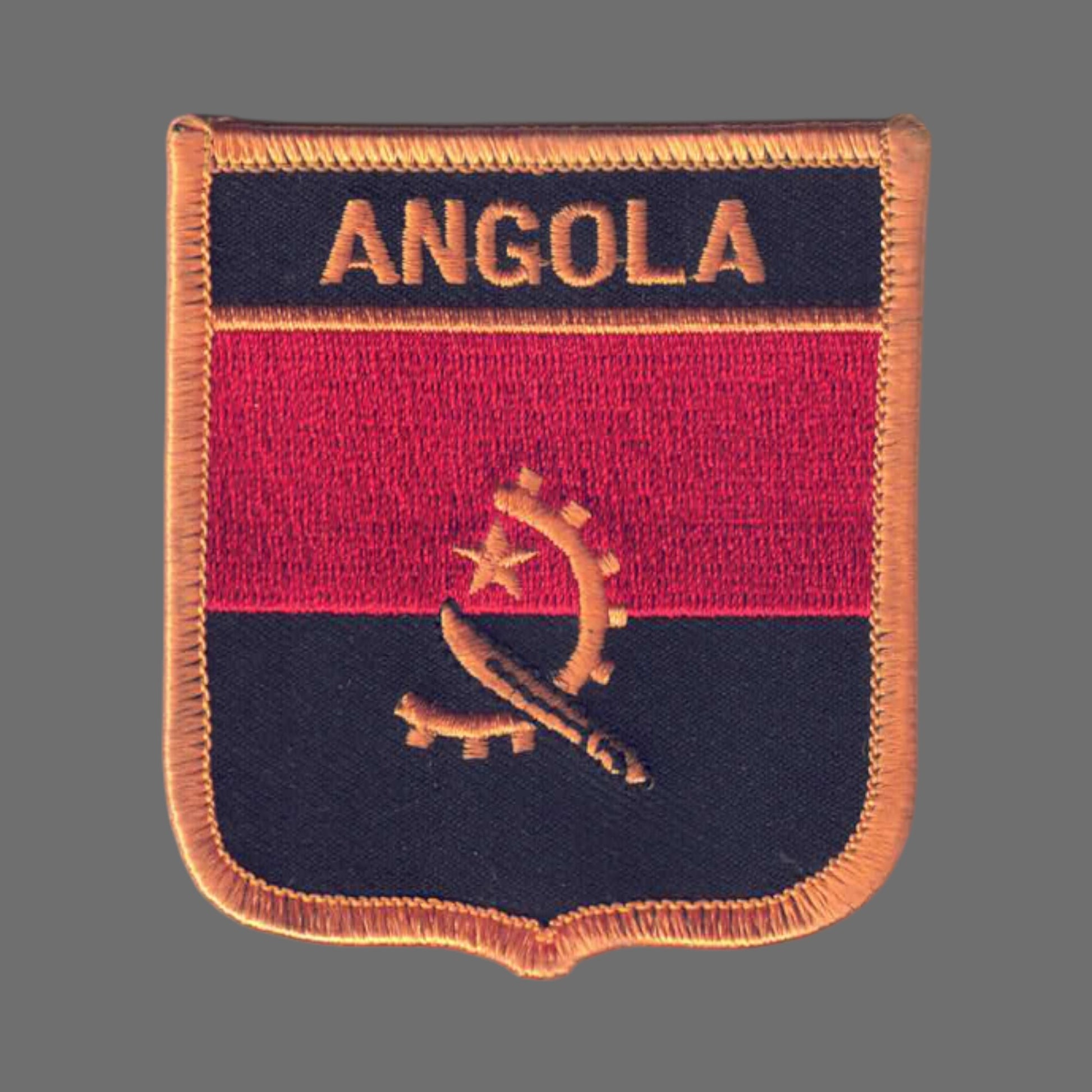 7199 - ANGOLA Medium Country Flag Shield Uniform or Souvenir Patch, Badge, or Emblem.