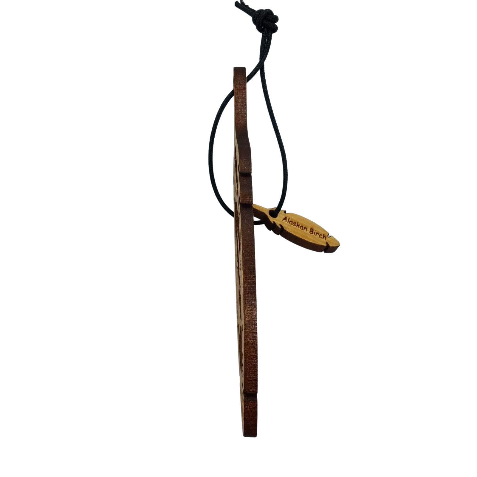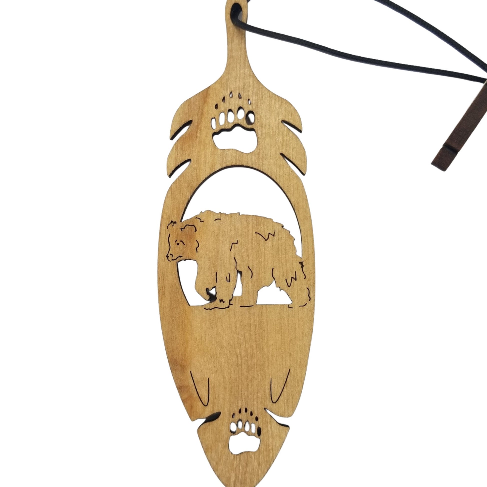 Ketchikan Alaska Bear Christmas Ornament Wood Laser Cut Handmade in USA Souvenir Memento Feather 5.375" Travel Gift AK Leaf