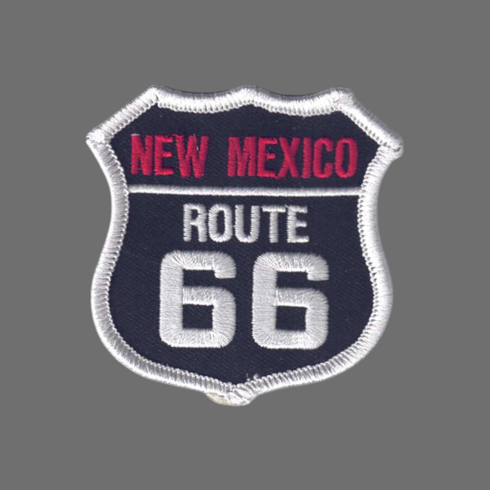 2566-01 - NEW MEXICO ROUTE 66 Red and White Text on Black Background Souvenir Patch, Badge, or Emblem.