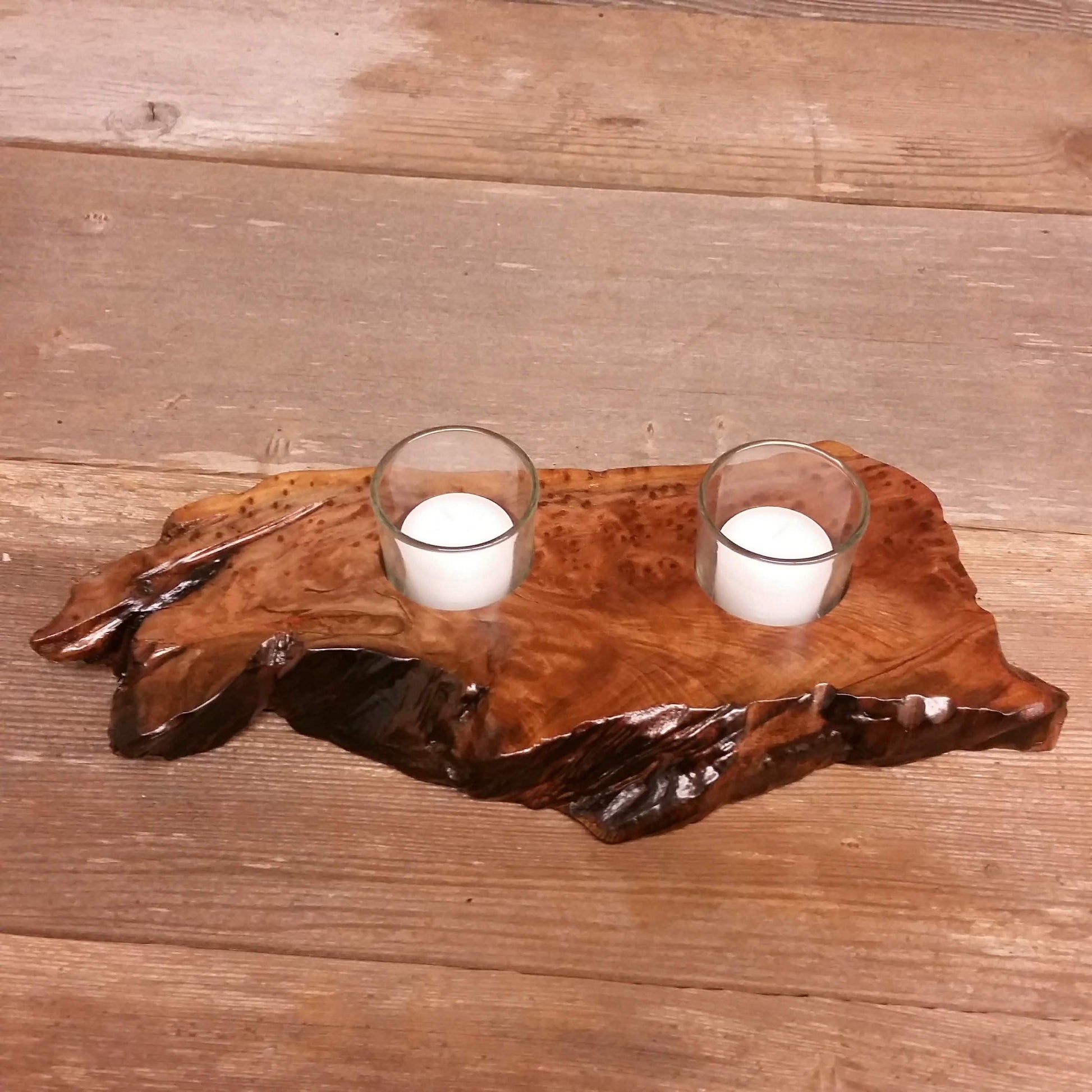 Rustic Redwood Wood Candle Holder 2 Glass Votive Handmade Home Decor 5th Anniversary Christmas Gift #V