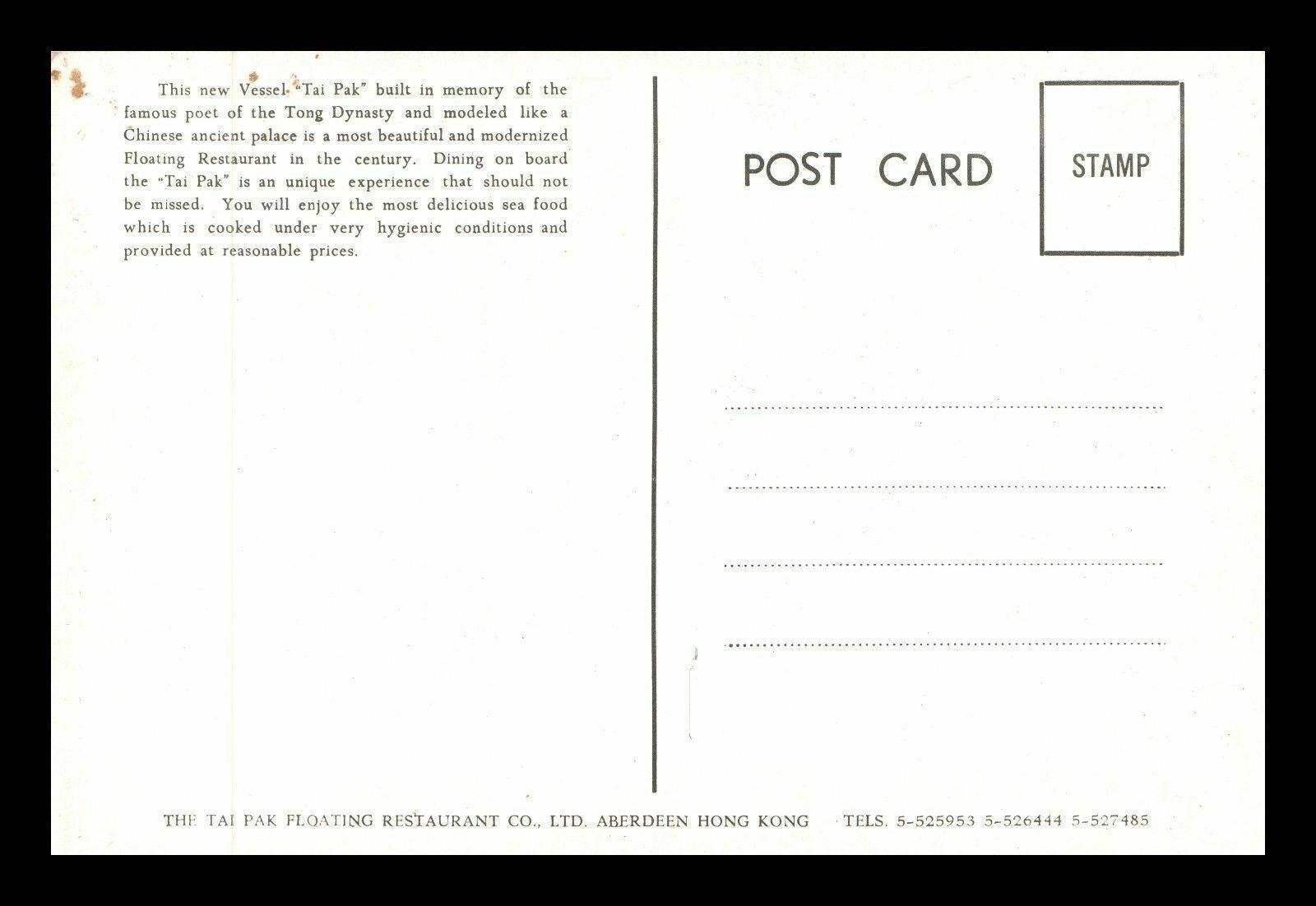 Tai Pak Floating Restaurant in Aberdeen Hong Kong Postcard - Used Postcard