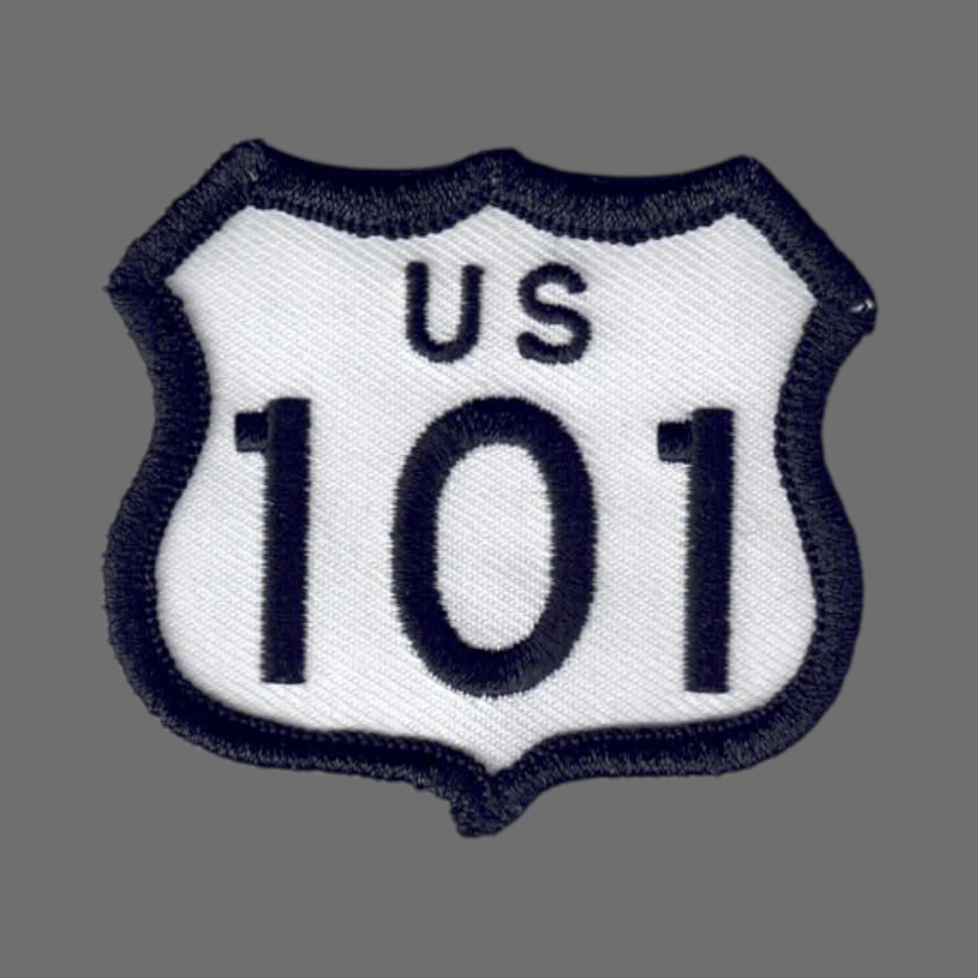 8101/2 - US 101 highway sign Hwy 101 Souvenir Patch, Badge, or Emblem White with Black