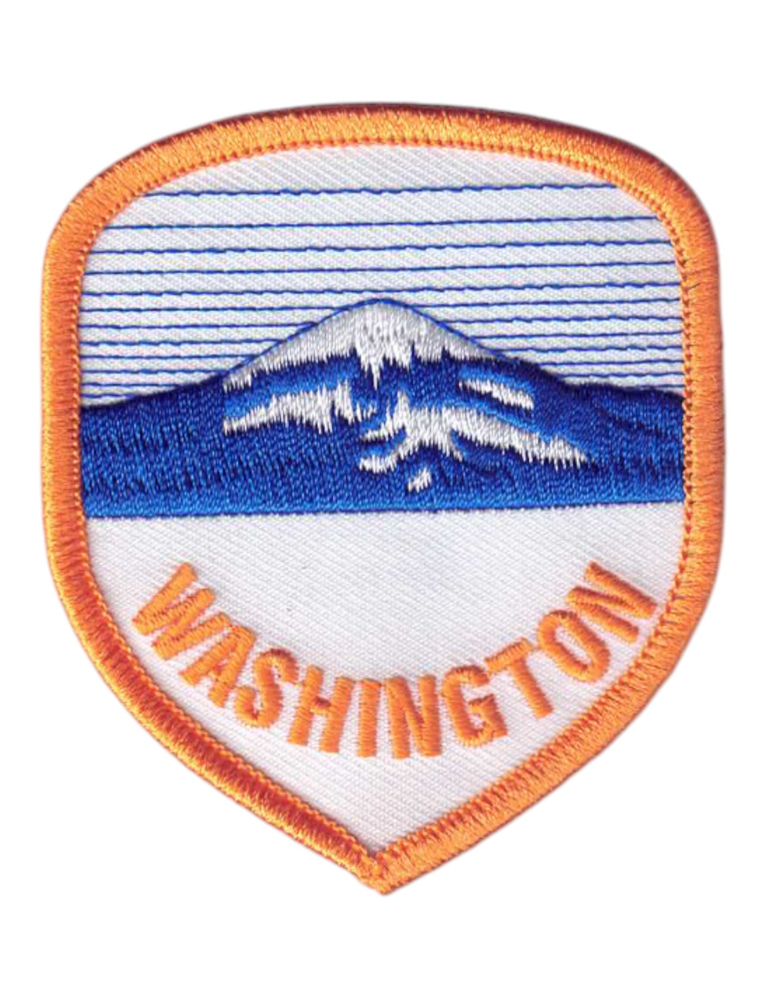 3353 - WASHINGTON Mountain Shield With Yellow Border Souvenir Patch, Badge, or Emblem.