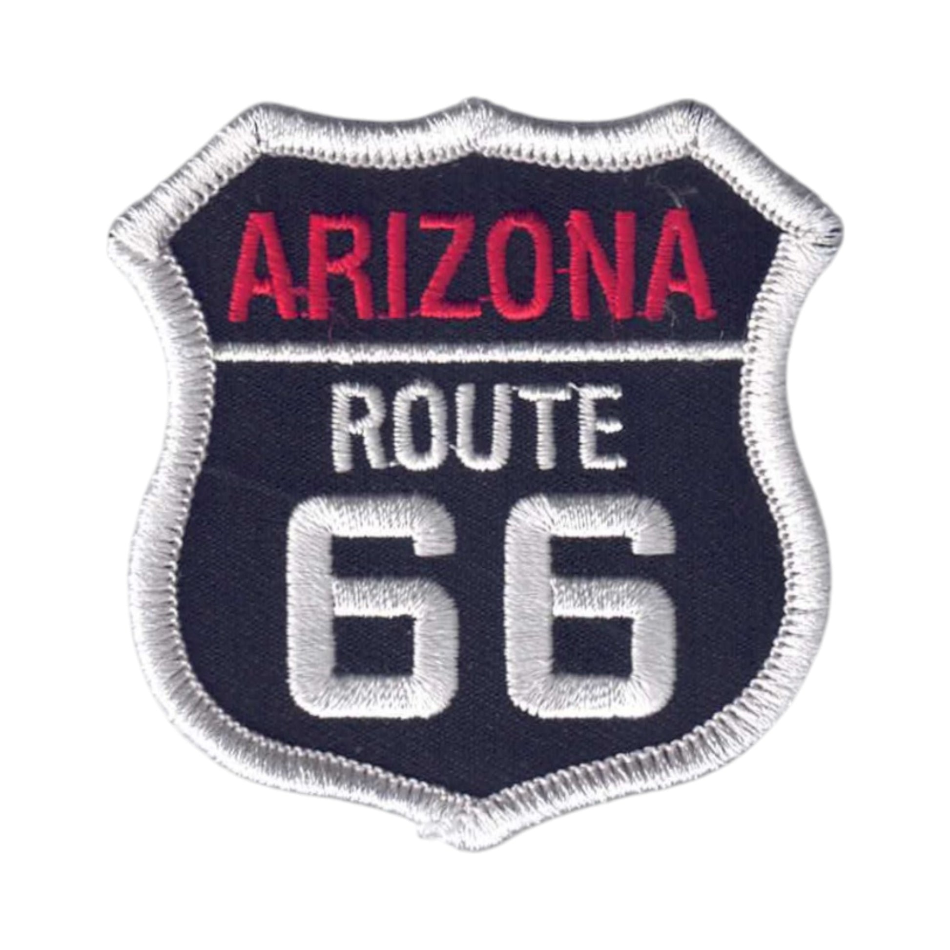 1116-01 - ARIZONA Route 66 Red and White Text on Black Twill Souvenir Embroidered Iron On Patch