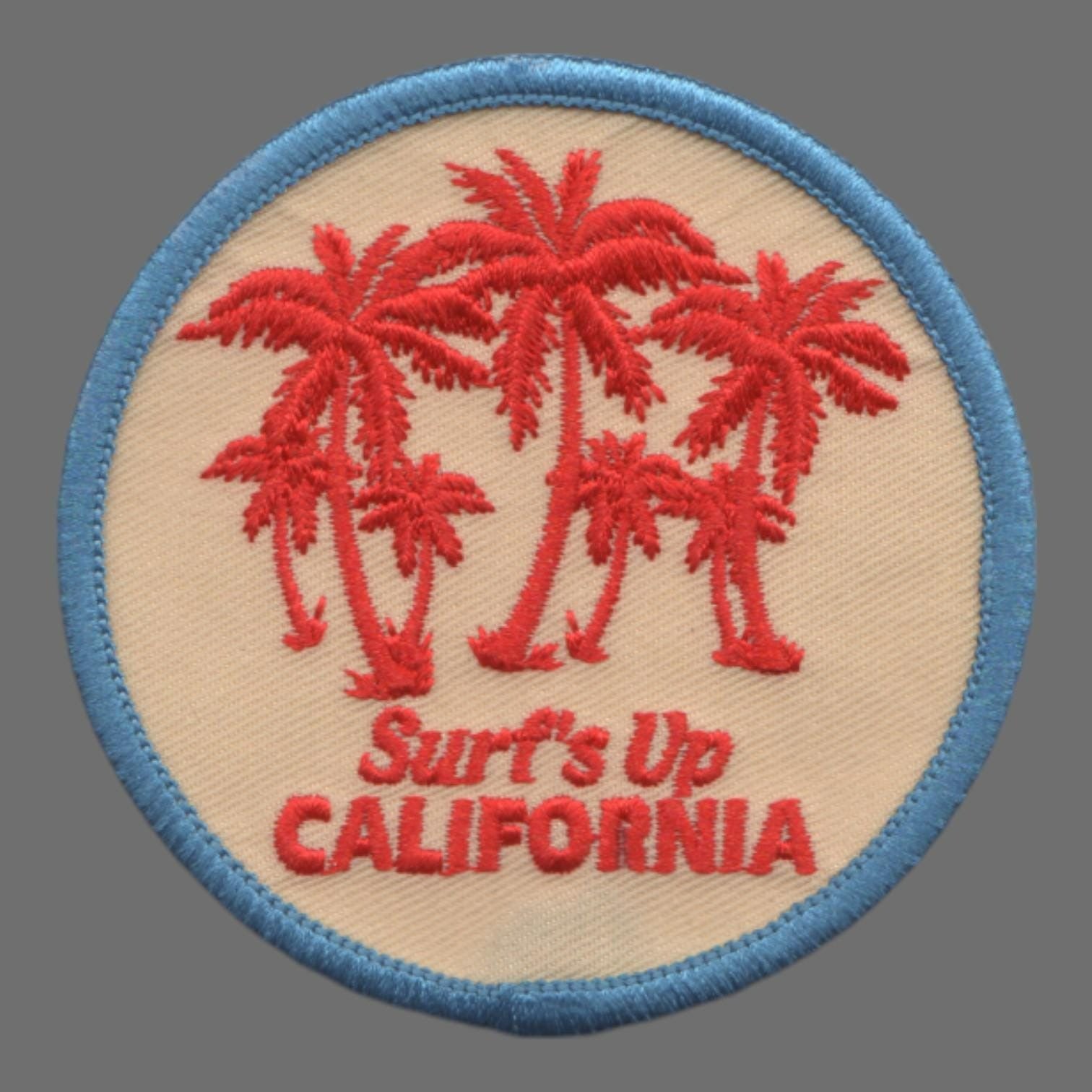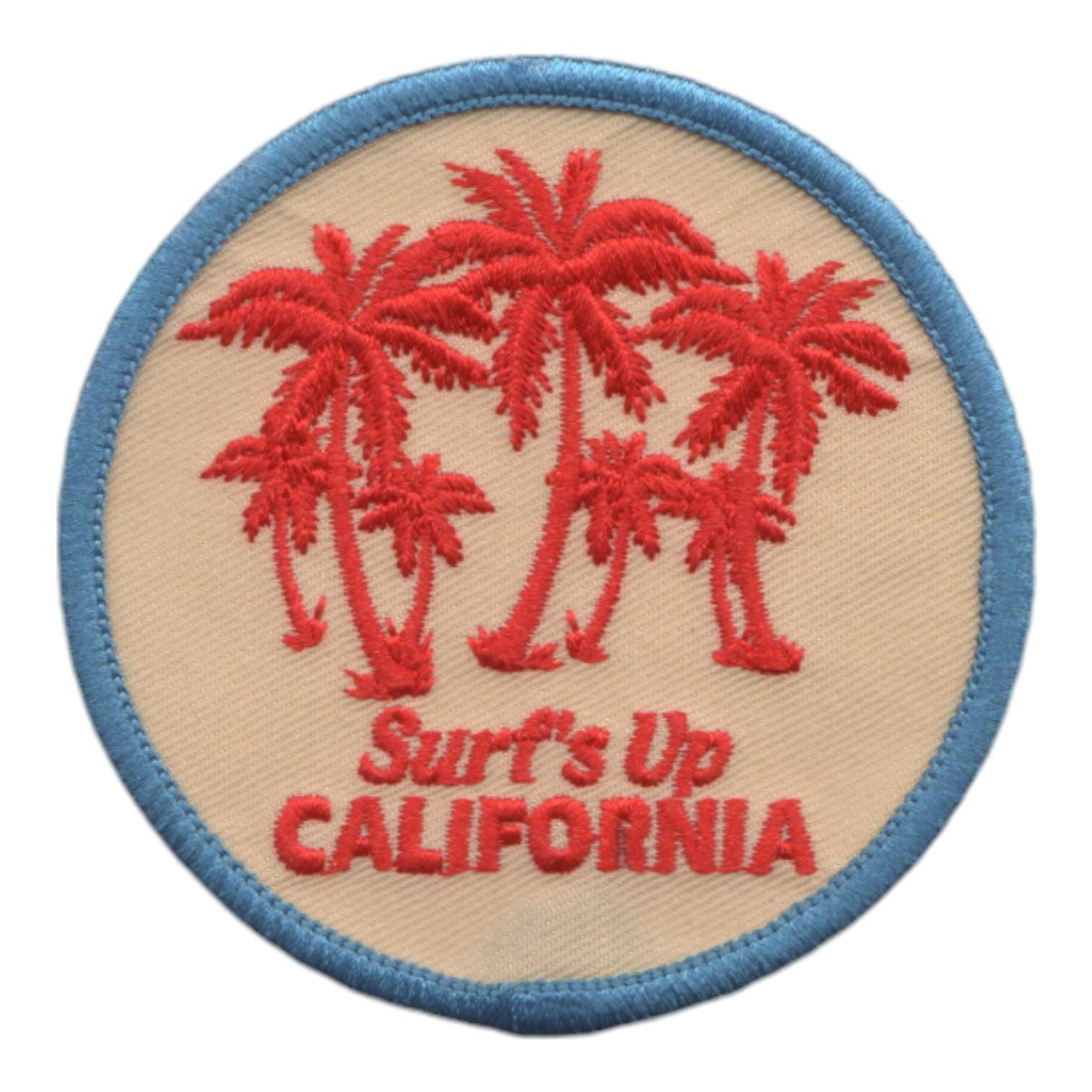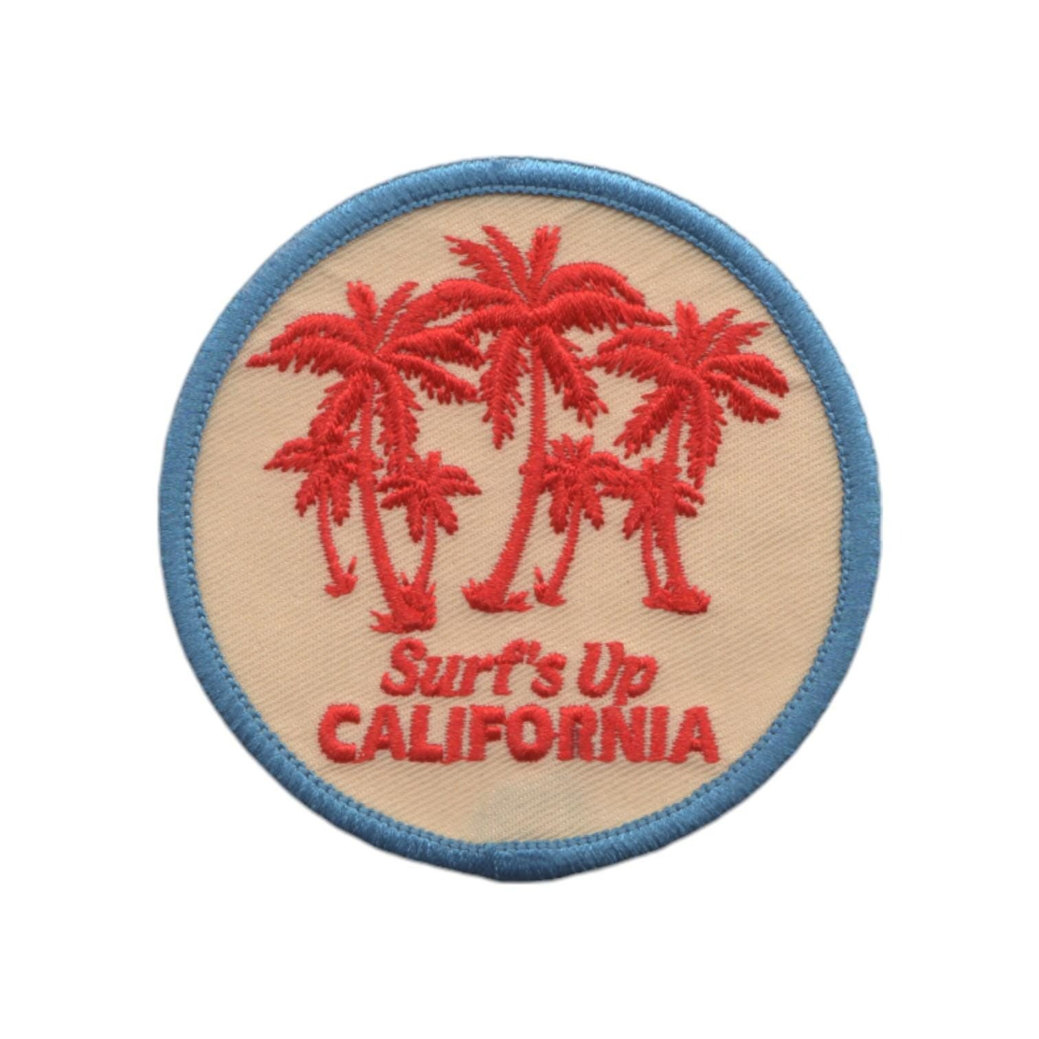 CA State Patch or Applique. Text says Surf's Up California and depicts palm trees.