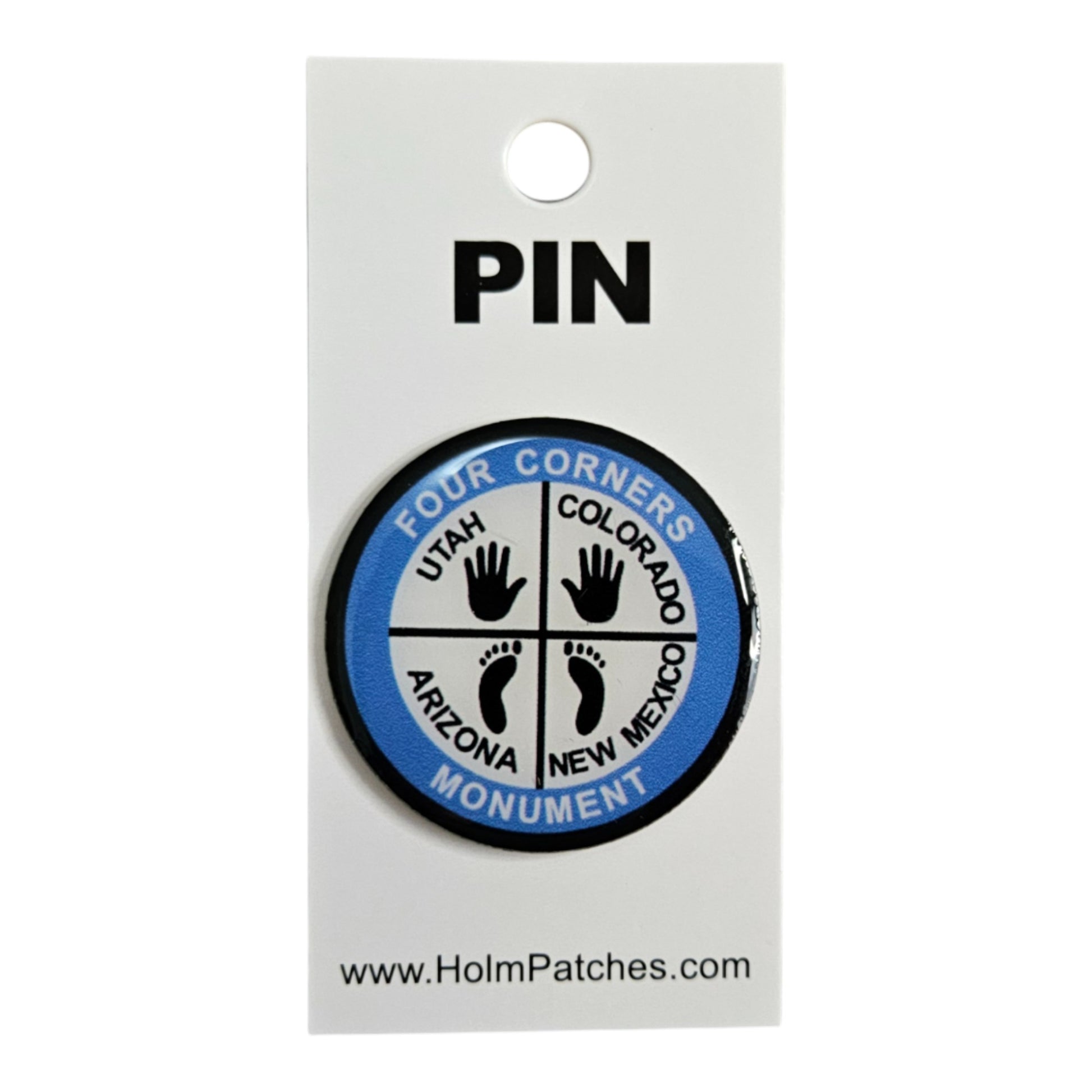 0475-0871 - FOUR CORNERS MONUMENT ARIZONA COLORADO ARIZONA NEW MEXICO printed hat pin. 1.25". In a bag on a hang card for retail display.