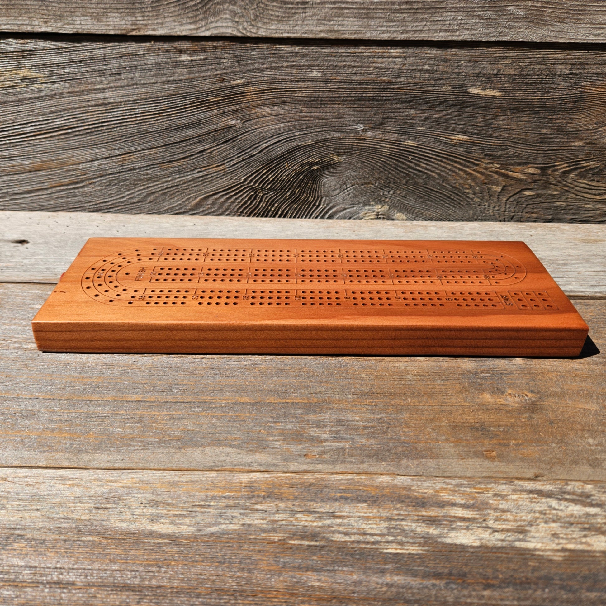 California Redwood Cribbage Board Handcrafted in Northern California of the United States. This allows for up to 3 players. Each board's grain, coloring, little dings, dents, character, etc. will vary slightly.