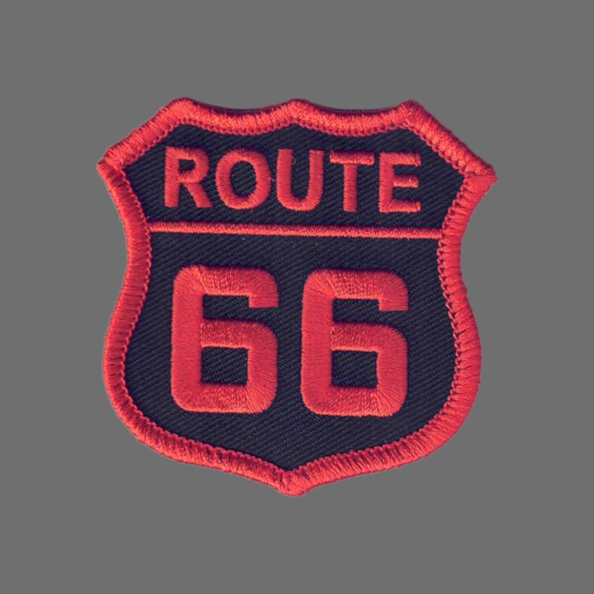 6876-32/01 - ROUTE 66 Black with Orange Souvenir Patch, Badge, or Emblem. **Please note the Orange color may not be shown quite accurately, computer monitors, etc. vary.