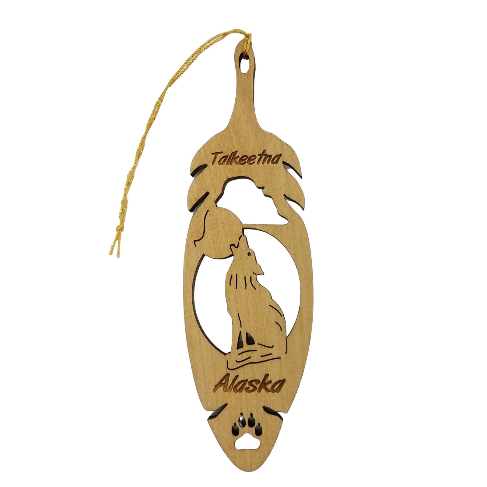 Talkeetna Alaska Wolf Christmas Ornament Wood Laser Cut Handmade in USA 5.5" - Wolf Lover Gift