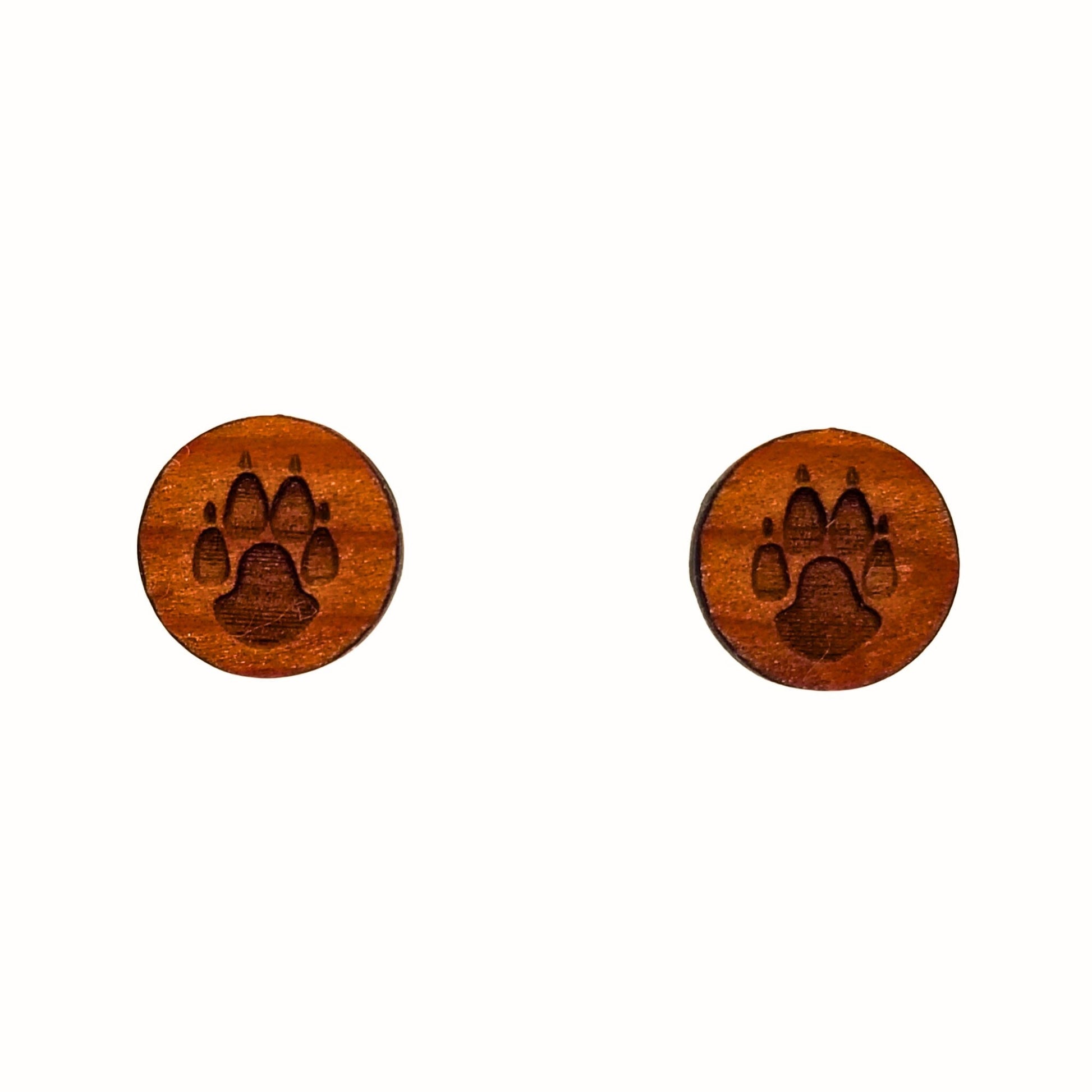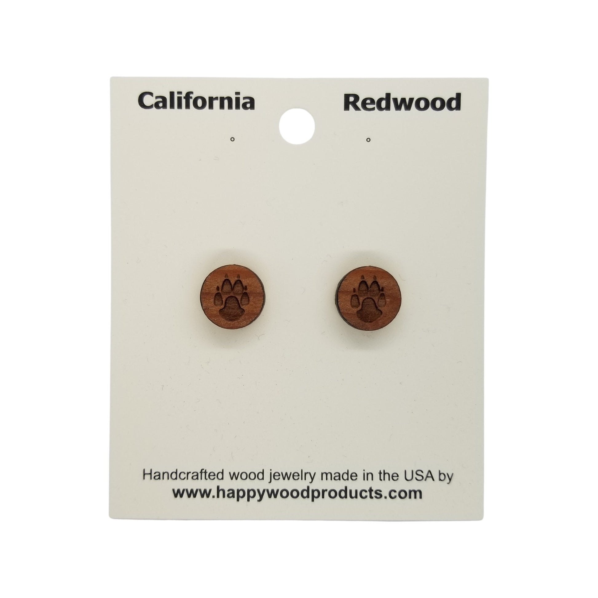 Wolf Paw Earrings - Wood Earrings - California Redwood Stud Earrings - CA Souvenir Keepsake - Post Earrings - Wolf Tracks