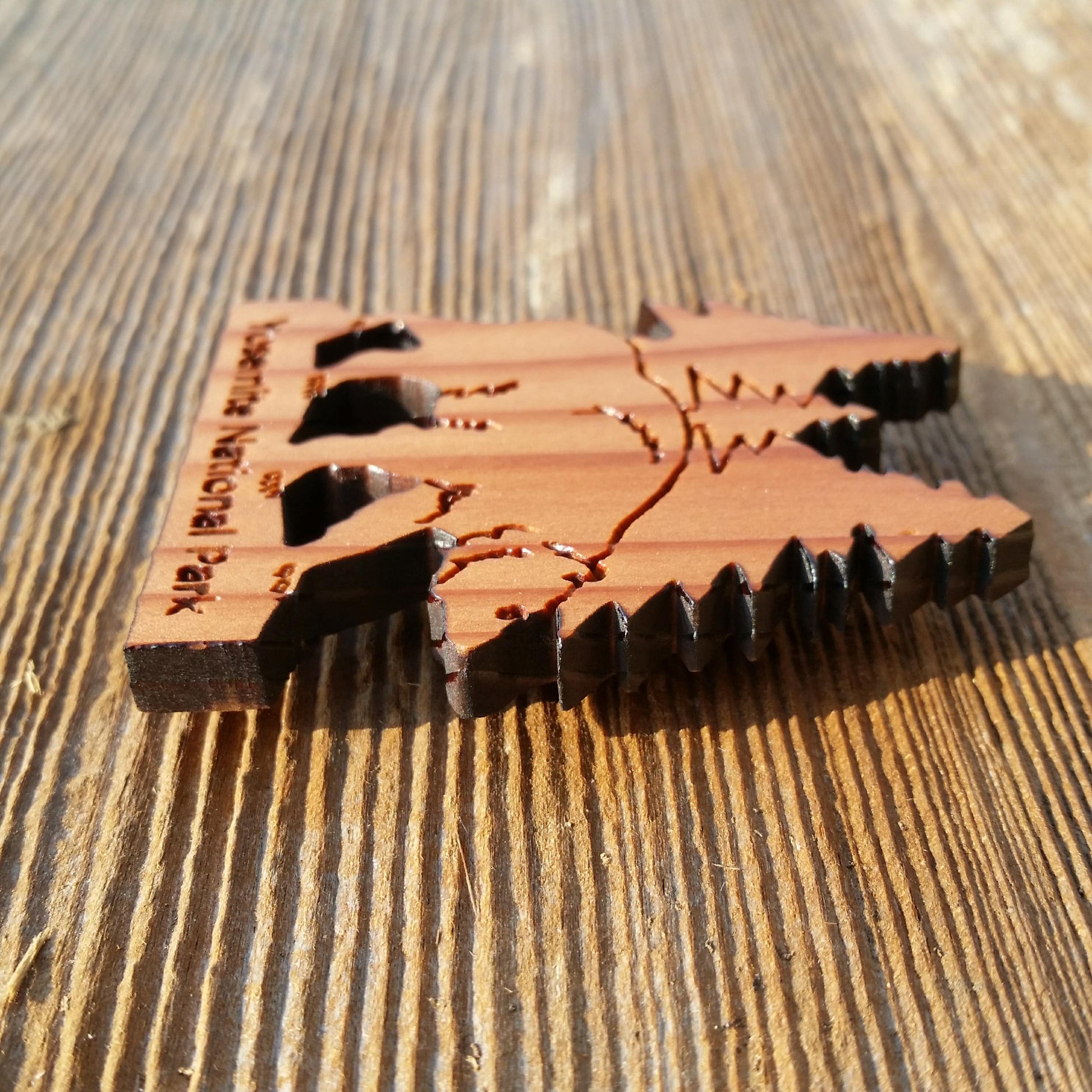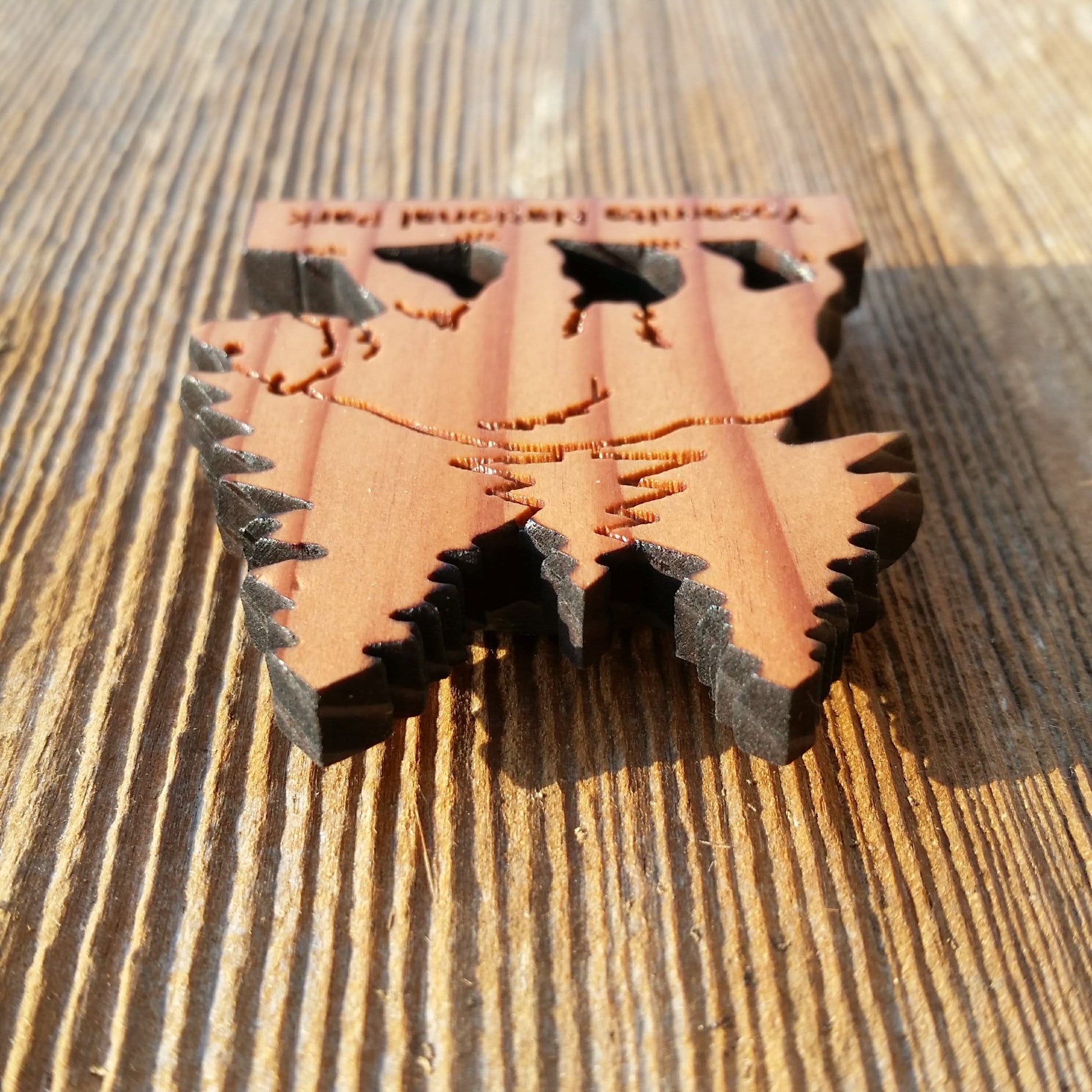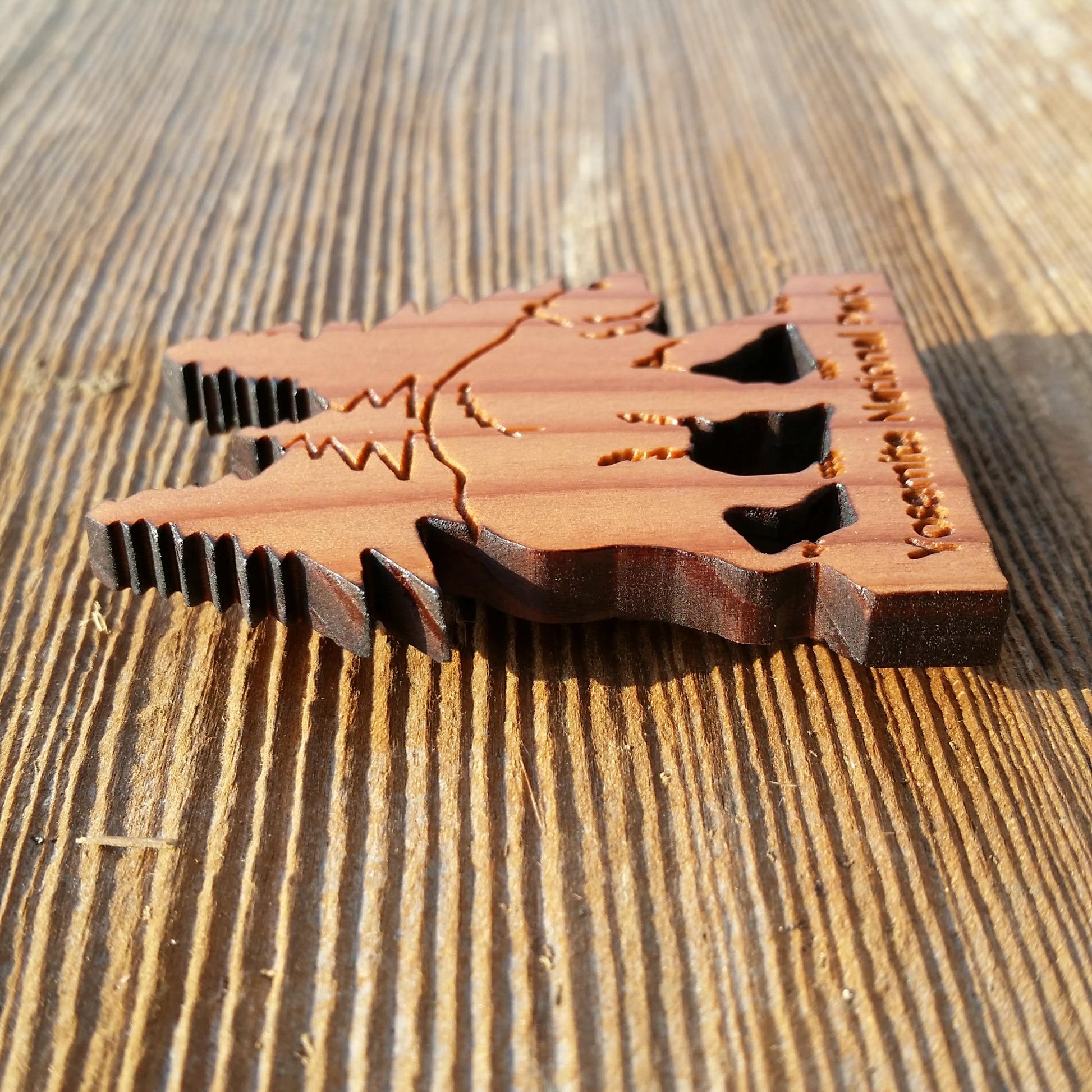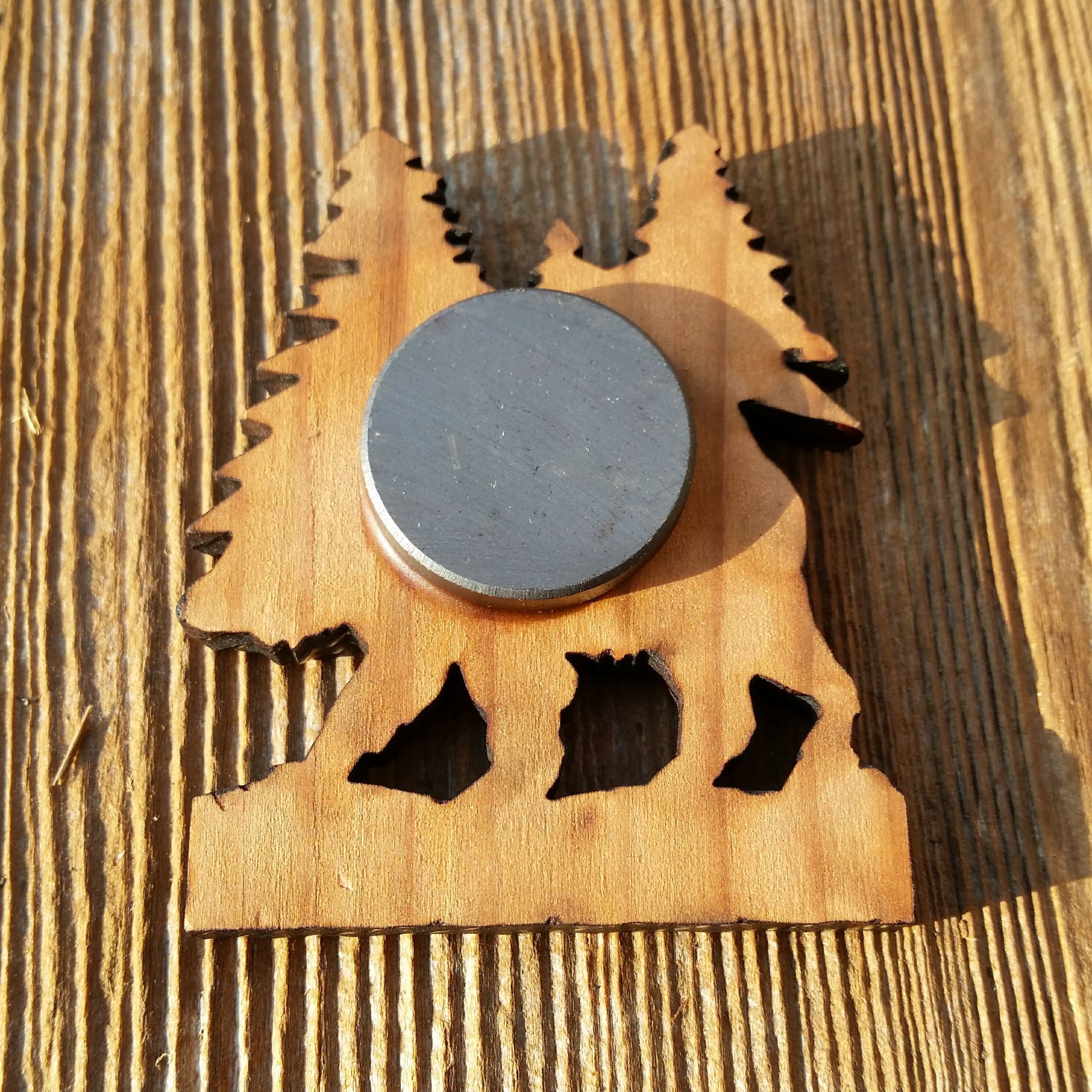 Our Yosemite National Park Bear Tree Handmade Magnets are made out of wood here in California and are approximately 2.5" x 2" x .13" thick.